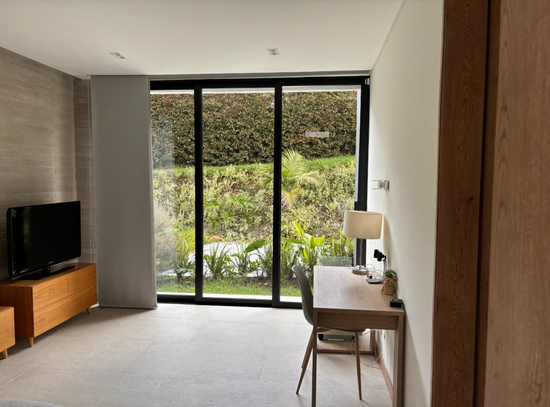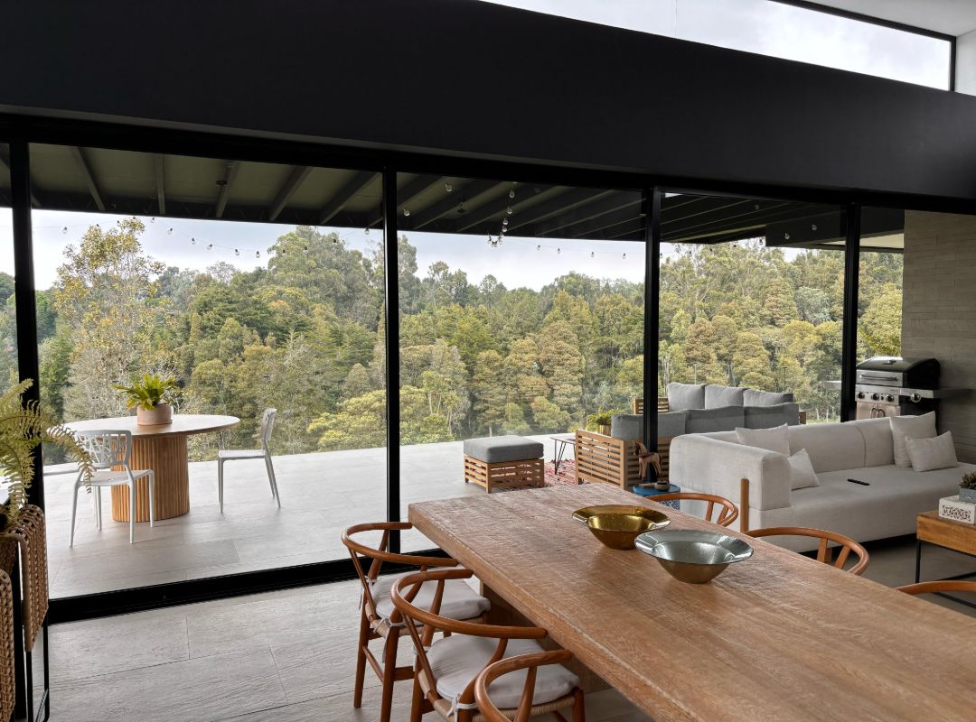 Una casa con alma bohemia y una atmósfera cálida, donde lo artístico se fusiona con lo funcional. Fuimos parte de este proyecto lleno de carácter, instalando ventanales con sistema monumental distribuidos en distintas secciones de la vivienda. Estas estructuras permiten una apertura según el área, mejorando la ventilación natural y enmarcando vistas hacia el jardín, además de generar una conexión armónica entre el interior y el exterior.